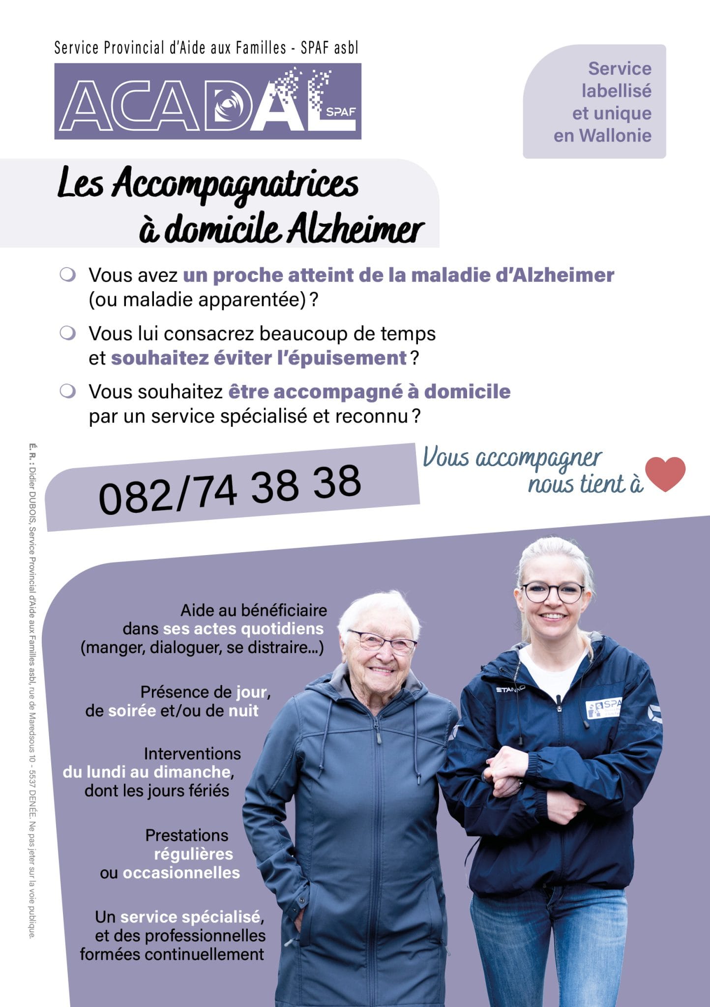 - Article du journal L’Avenir concernant notre service Accompagnatrices à domicile Alzheimer – « Gardes Alzheimer : toujours uniques en Wallonie, depuis 12 ans », publié le 26 août 2025 ;
