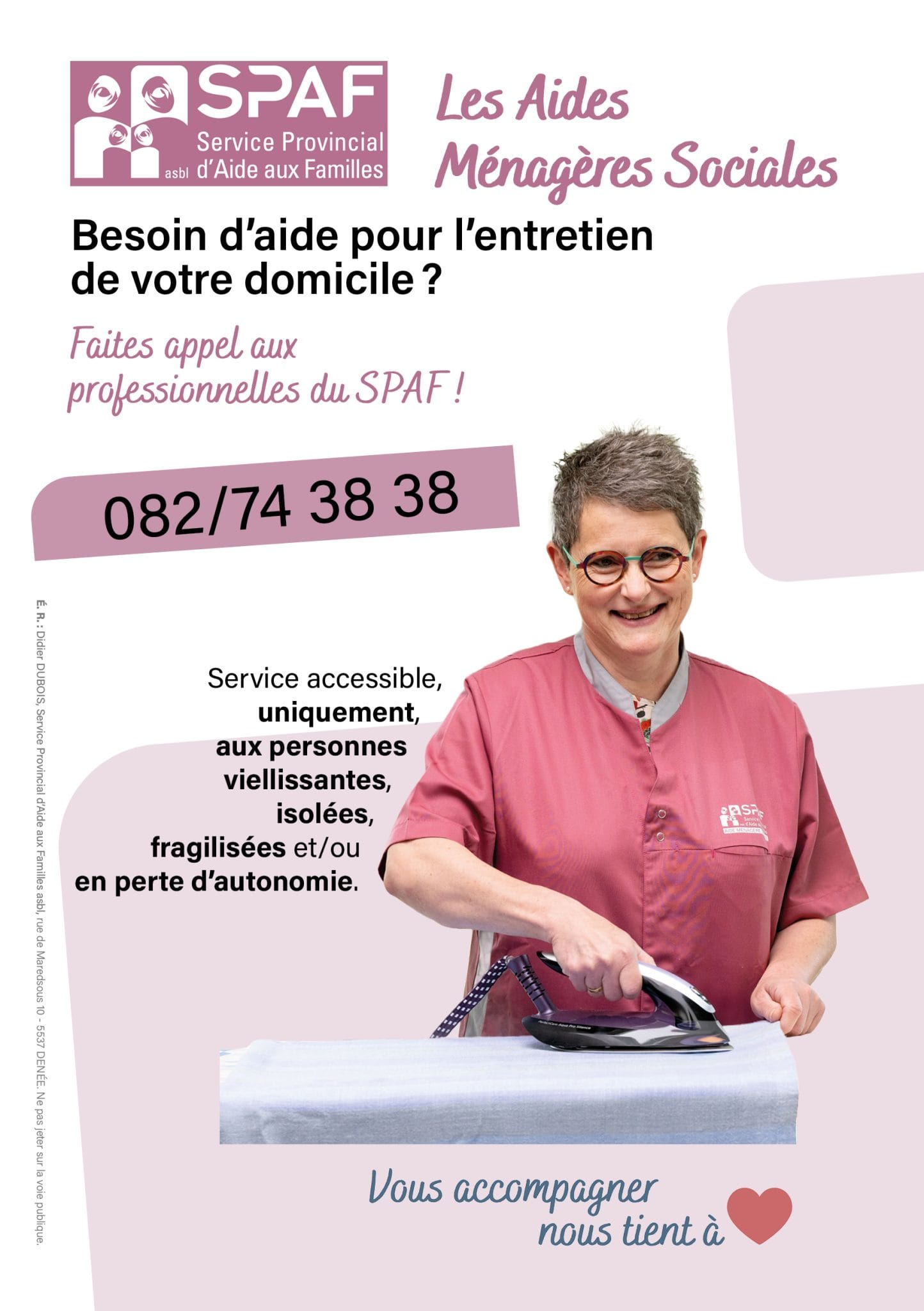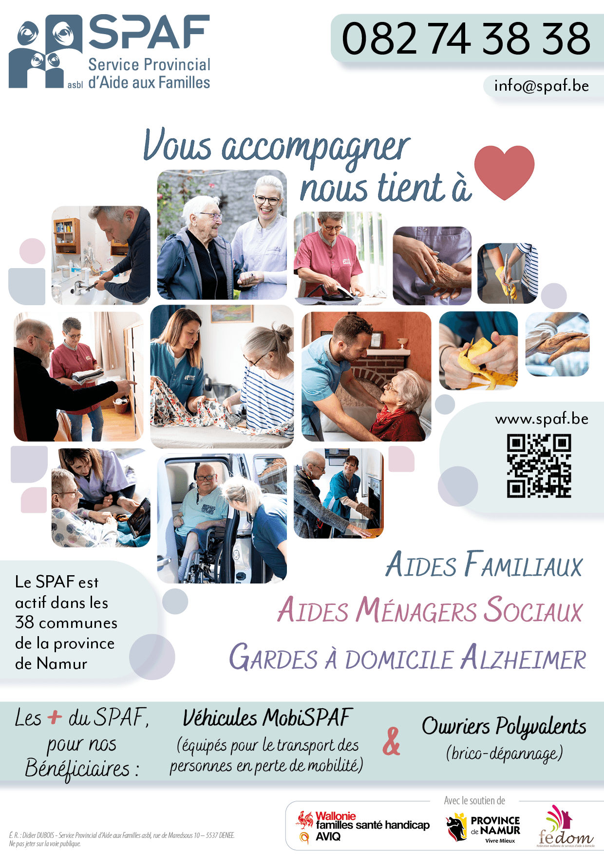 Brochure de l’AsSAF, (Association des Services d’Aide aux Familles et aux Aînés), asbl qui a la spécificité de rassembler l’ensemble des services publics et privés agréés wallons du secteur de l’aide à domicile. Découvrez les métiers d’aide familial.e, de garde à domicile et d’aide-ménager.ère social.e dans leur publication officielle.